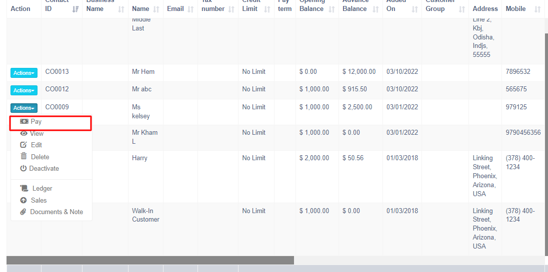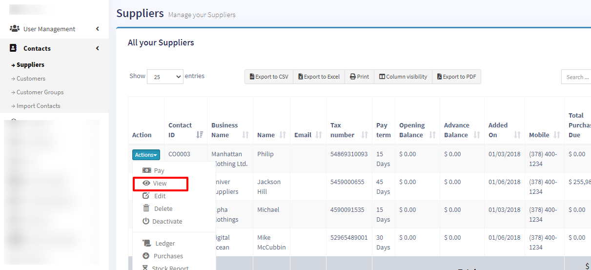 To view the opening balance of contact, go to List Supplier/customer, go to view, and on the view page, you will find the opening balance & opening balance due.