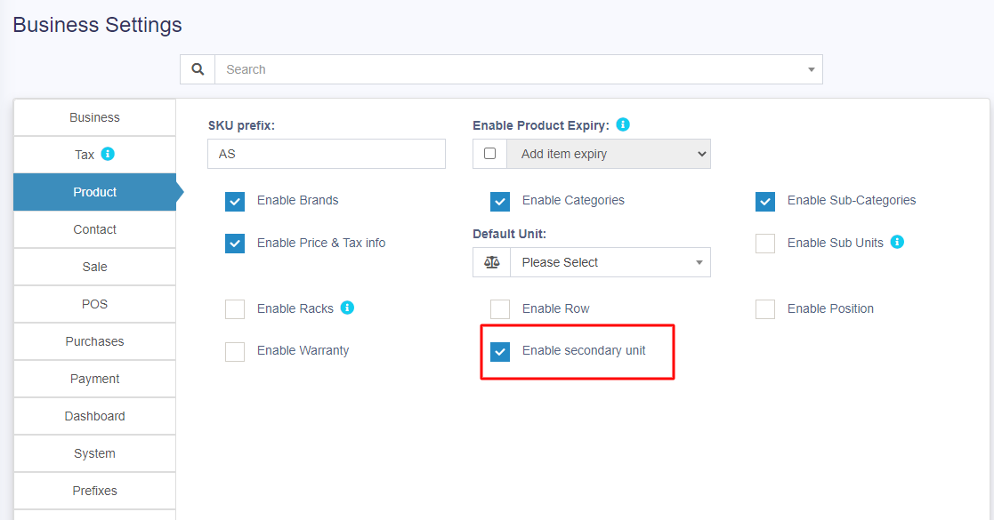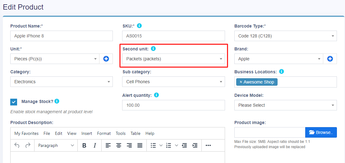 On enabling this, a secondary unit label will be shown in add/edit products screen.