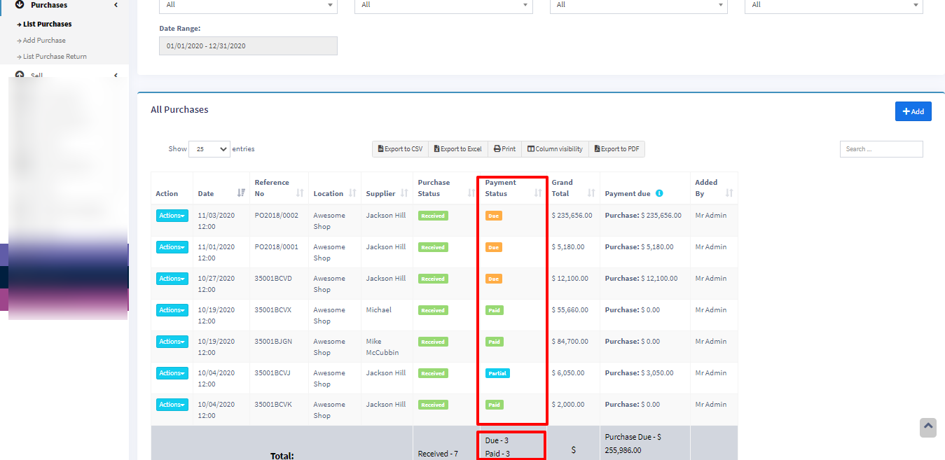 - 4. Overdue: PO is 100% not paid & past the due date.