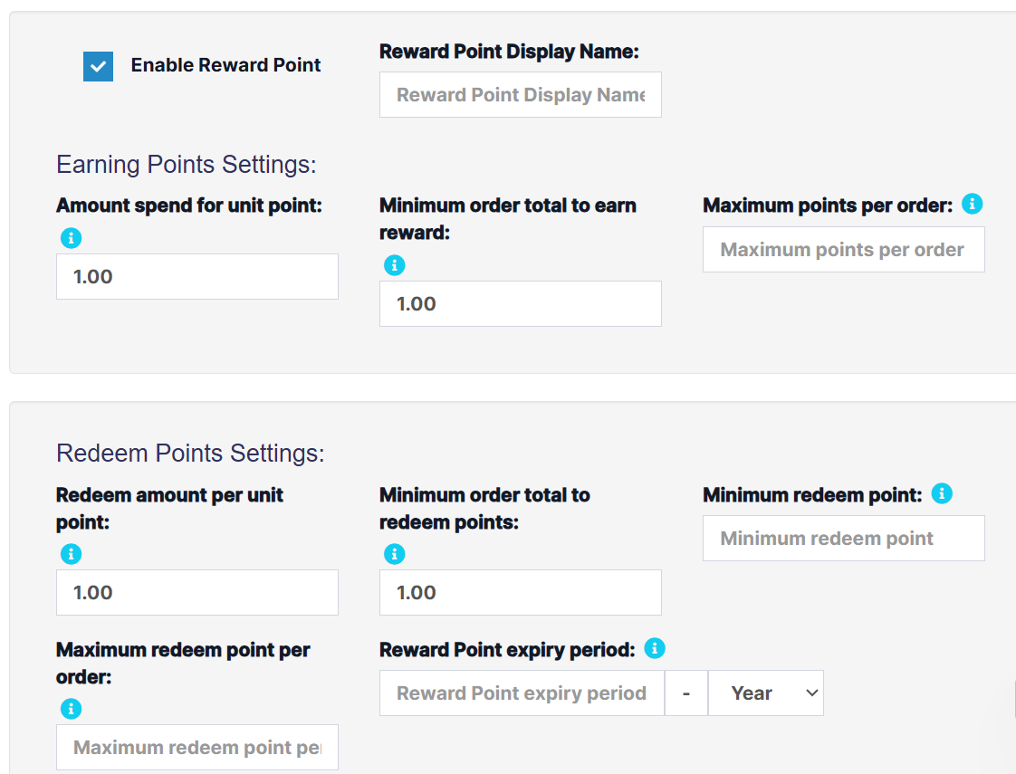- Reward points display name: This is display or label name for reward points. Some people like to keep it as reward points or reward coins etc. Only used for displaying label.