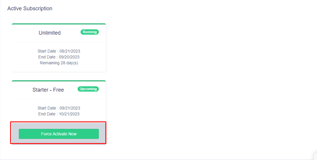 Step 2 Once subscribed, press the force activate button, to activate it as the current package to use it.
